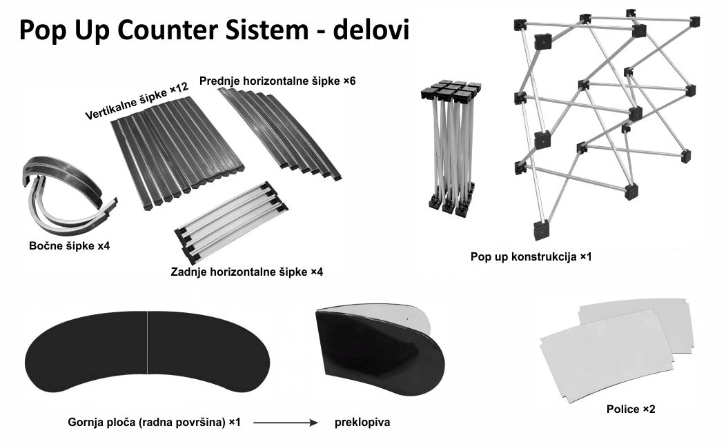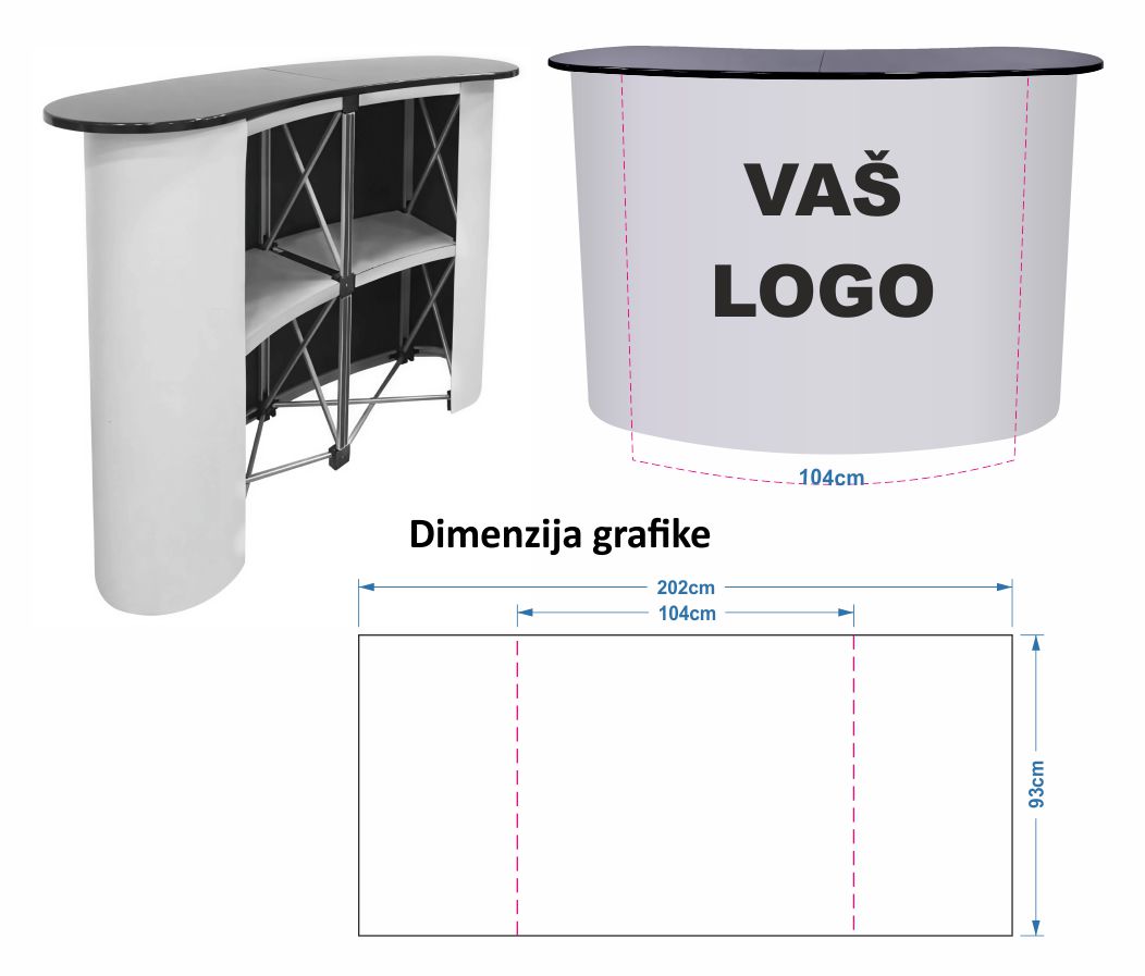 Cena brendiranog pop up countera 128x45x100cm: 215eur+PDV