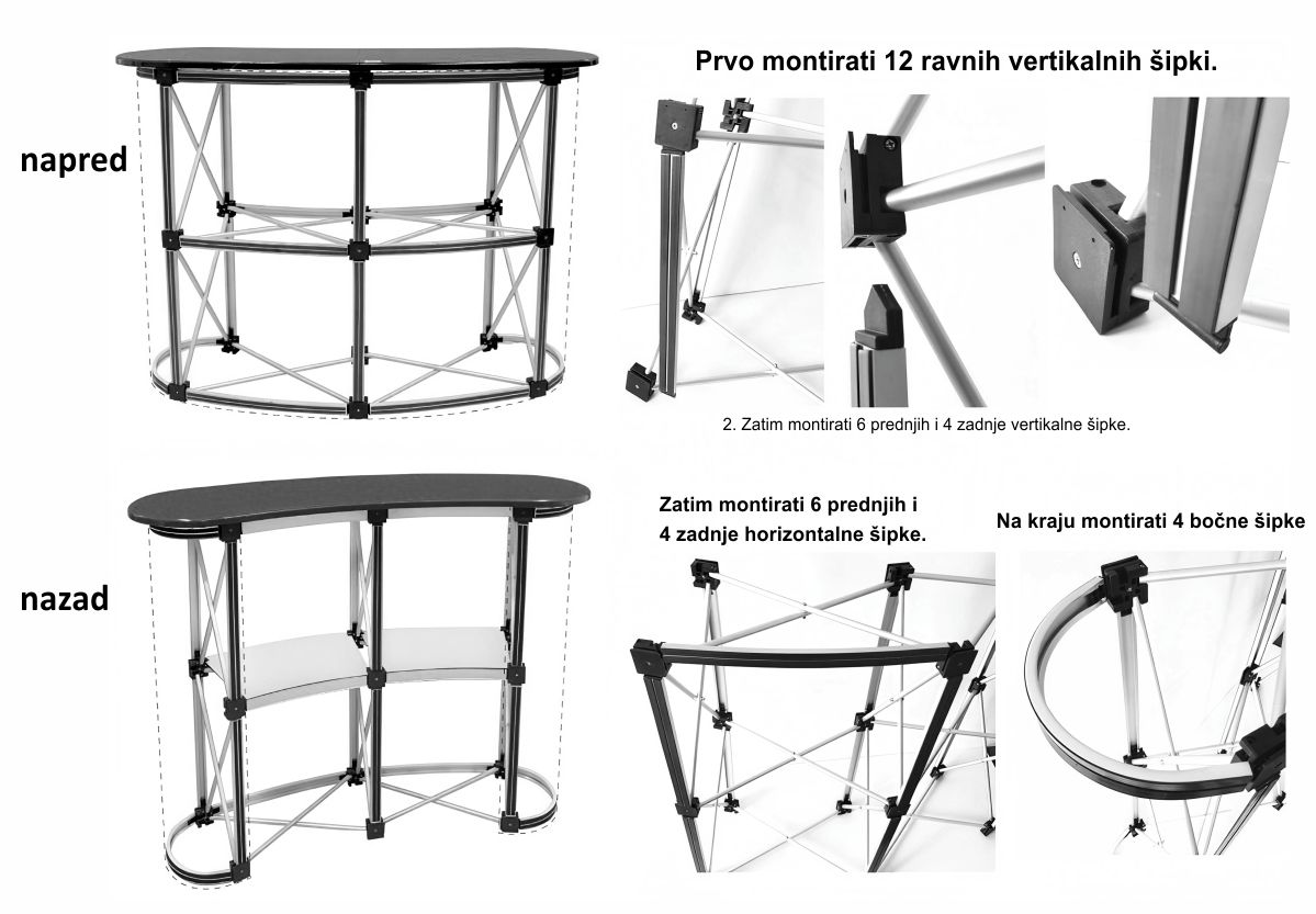 - Raširite aluminijumsku konstrukciju i na nju montirajte šipke